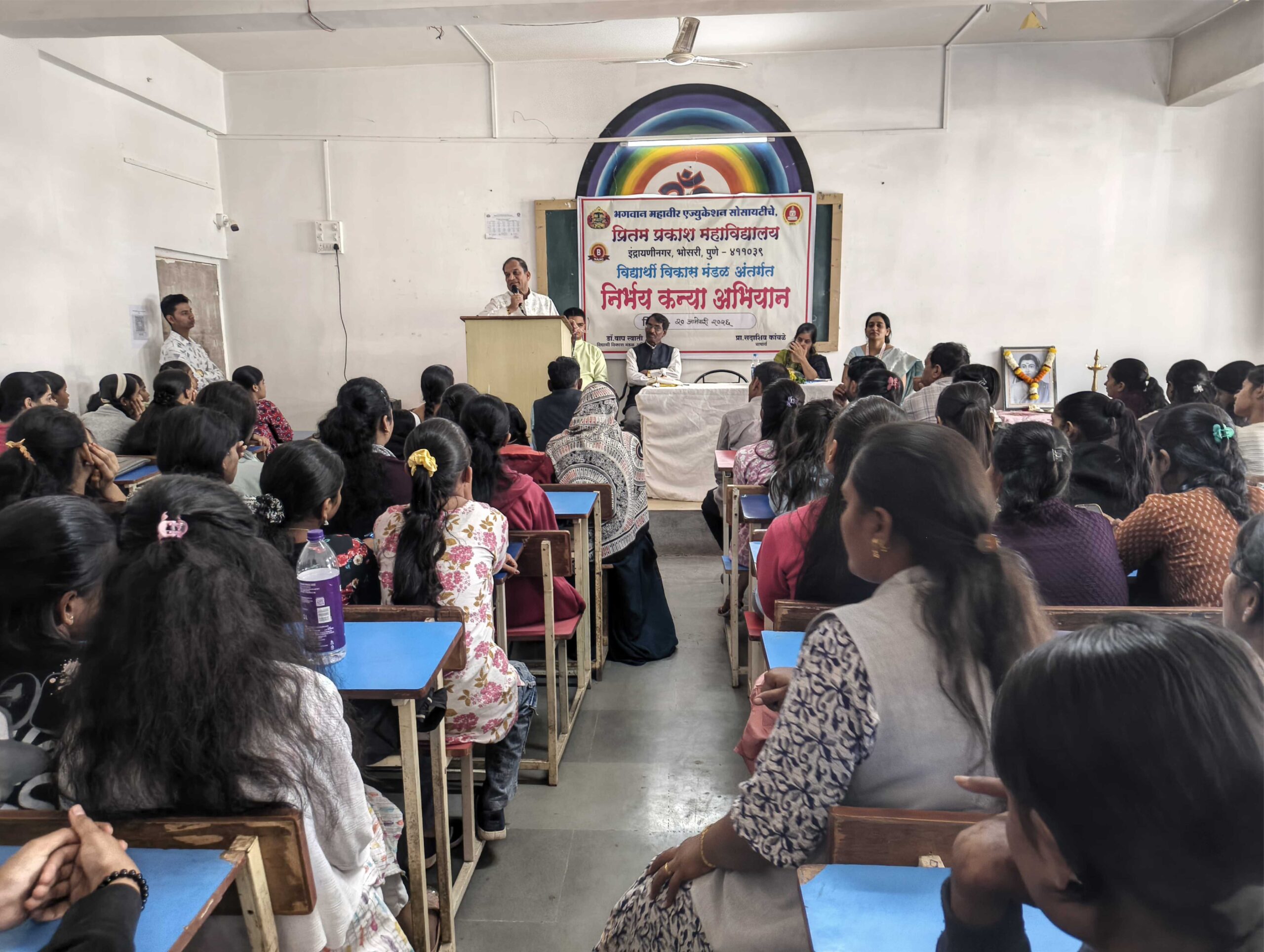 सावित्रीबाई फुले पुणे विद्यापीठ आणि भगवान महावीर एज्युकेशन सोसायटीचे प्रितम प्रकाश महाविद्यालय भोसरी यांच्या संयुक्त विद्यमाने ‘निर्भय कन्या अभियान’ या दोन दिवशीय कार्यशाळेच्या व्याख्यानमालेच्या उद्घाटन प्रसंगी ते बोलत होते.