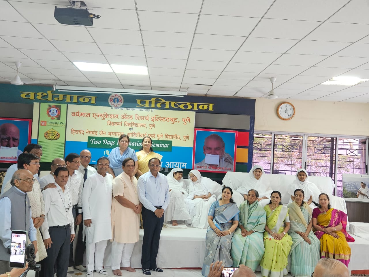 पुणे, वर्धमान एजुकेशन एण्ड रिसर्च इन्स्टिट्यूट, पुणे, विश्वकर्मा विश्वविद्यालय, पुणे एवं हिराचंद नेमचंद जैन अध्यासन, सावित्रीबाई फुले पुणे विद्यापीठ के संयुक्त तत्वावधान में “जैन विद्या के विविध आयाम” विषय पर द्विदिवसीय अंतरराष्ट्रीय संगोष्ठी का आयोजन दिनांक 16 व 17 मई 2025 को पुणे में भव्य रूप से संपन्न हुआ।