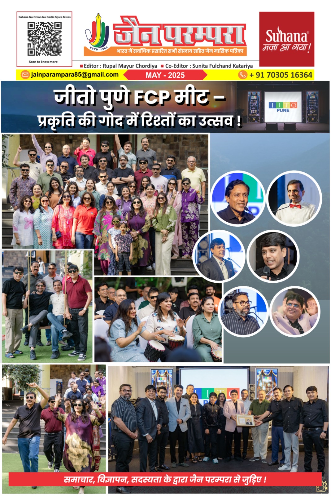 पुणे, जीतो पुणे चैप्टर द्वारा महाबलेश्वर के खूबसूरत मेरिडियन होटल में दो दिवसीय FCP (फैमिली सर्कल प्रोग्राम) मीट का आयोजन किया। चेयरपर्सन इंद्रकुमार छाजेड़ और चीफ सेक्रेटरी दिनेश ओसवाल के कुशल मार्गदर्शन में यह ट्रिप सफलतापूर्वक संपन्न हुई। इस मीट के इवेंट कन्वेनर भरत भोमावत का विशेष रूप से सभी ने आभार व्यक्त किया
