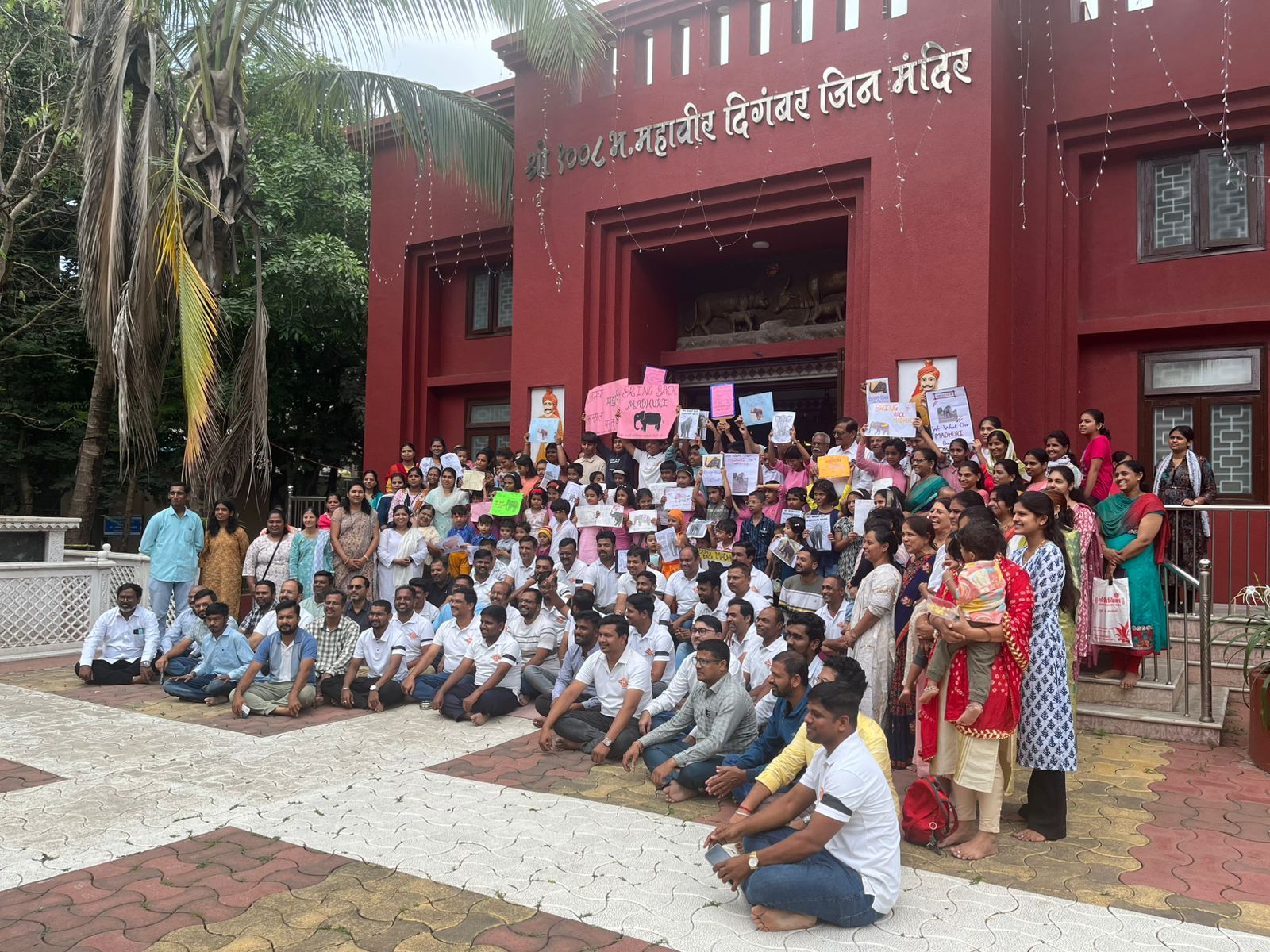 निगड़ी, पुणे, नांदणी मठ की महादेवी हथिनी को वापस लाने की मांग को लेकर पिंपरी-चिंचवड के जैन समुदाय ने रिलायंस इंडस्ट्रीज के अध्यक्ष मुकेश अंबानी के खिलाफ निगड़ी में विरोध-प्रदर्शन किया. इस प्रदर्शन में भगवान महावीर अहिंसा ट्रस्ट के अध्यक्ष अजित पाटील सहित महिला मंडल, वीरसेवा दल, और शांतिसागर पाठशाला के सैकड़ों सदस्यों ने हिस्सा लिया.